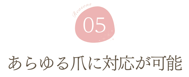 見た目だけで判断せず、これまでの経緯や不安なお気持ちにも寄り添いながら、爪に負担をかけない柔軟な方法で無理のないご提案を行います。