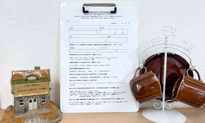 簡単なカルテをご記入いただいた後、現在のお爪の状態やライフスタイル、お悩みを丁寧にお伺いします。