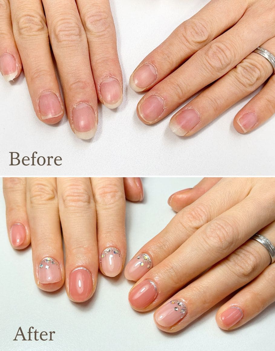 爪の水分量・厚み・生活習慣に合わせて下処理と塗布方法を細かく調整するため、家事・仕事・スマホ操作など、日常の動きにも耐えやすい仕上がりになります。