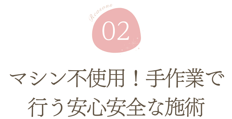 当サロンでは、電動マシンを使用せず、すべて手作業による施術を行っています。